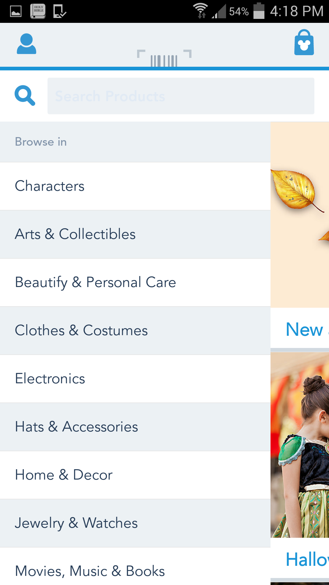 - Search by category (Slide your screen to the right to see a category menu–or begin to type in the search bar.)