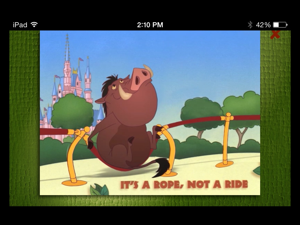 Letting kids play this app before a vacation may help eliminate some troubles with your little ones. I remember waiting in line to meet Mr. Incredible and Frozone and seeing lots of kids (including my own a few times) leaning, or pulling, or trying to sit on the rope dividers in the line. Disney Cast Members are trained to stay positive and to not directly use the word “no.” So, this poor girl was trying to think of lots of creative ways to telling kids, “Please stay off of the ropes.” It wouldn’t have been an easy (or fun) job. Next time, maybe I’ll say, “Remember, Timon and Pumbaa said …” and maybe my kids will listen more readily (since it’s Timon and Pumbaa’s rule, not Dad and Mom’s).