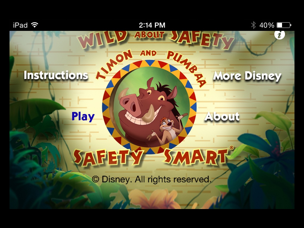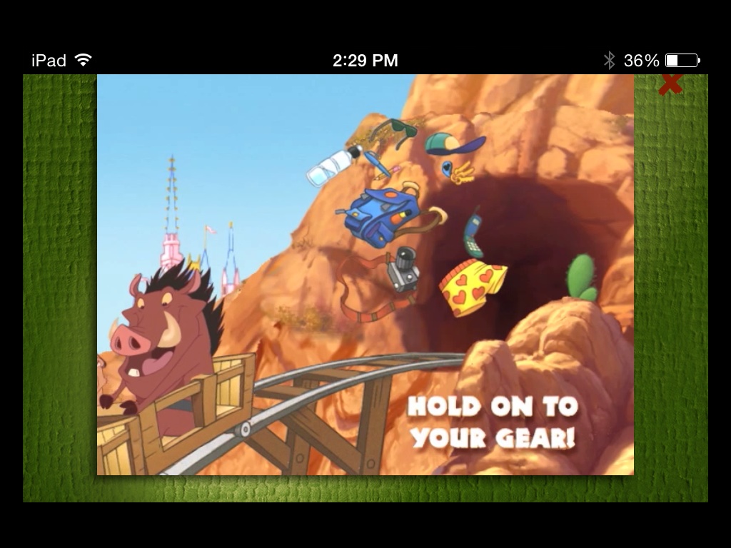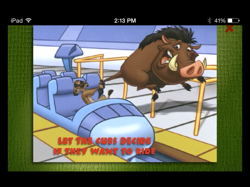 The “Safety Smart” app features Timon and Pumbaa on their vacation. It teaches children (and adults) about the possible consequences of making unsafe choices at the Parks.