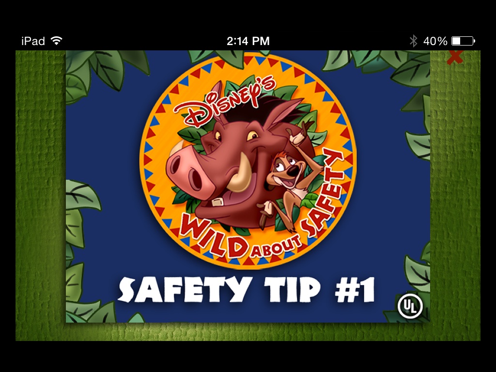 There are 17 safety tips, with a short video (or image) of Timon and Pumbaa demonstrating each one. Using this app is not like getting a boring lesson about making safe choices; it’s cute and funny. It tells kids, for example, to “keep an eye on your parents, so they don’t get lost.” One tip shows Timon using a paint roller to cover Pumbaa with sunscreen so he can “have fun in the sun” and not “get overdone.”