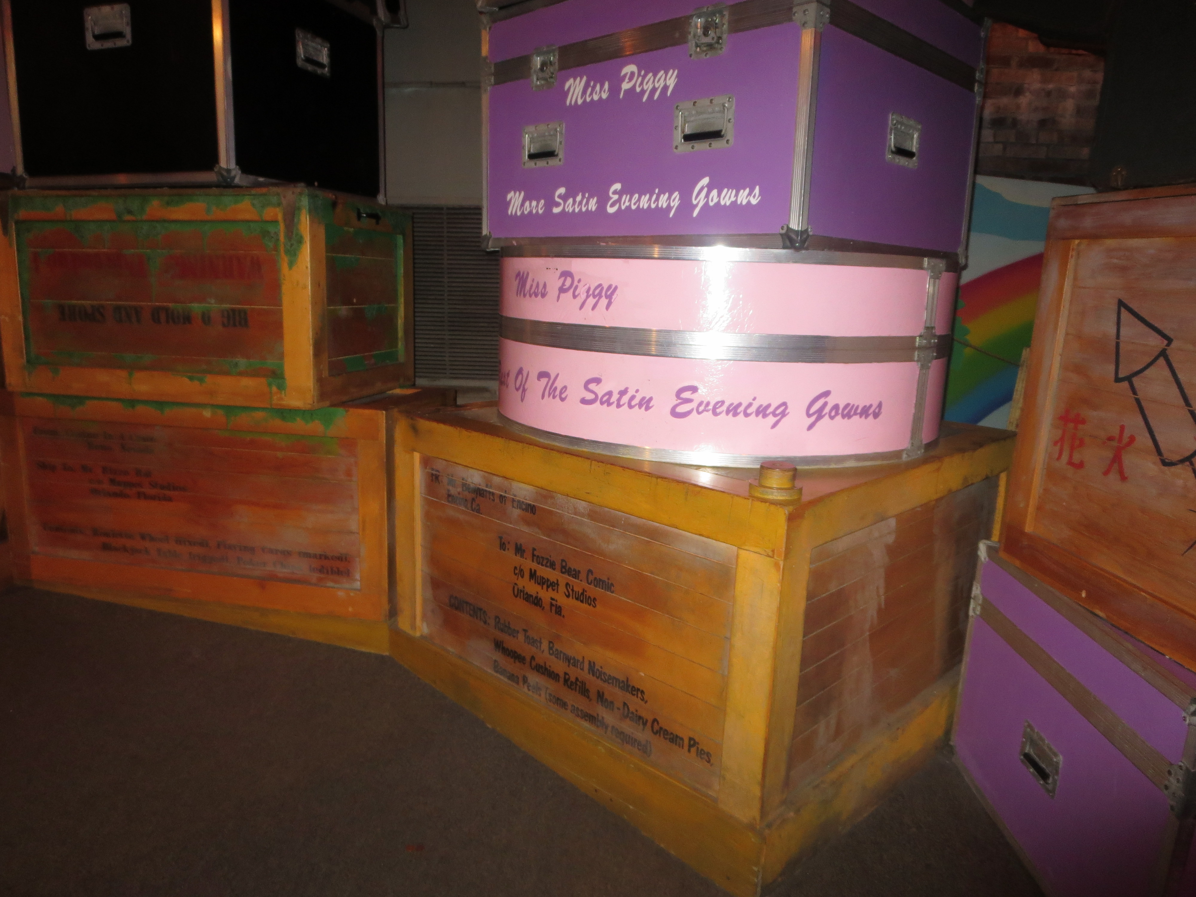Just a few of Miss Piggy’s fancy gown crates. Someone didn’t pay attention to the direction arrows.