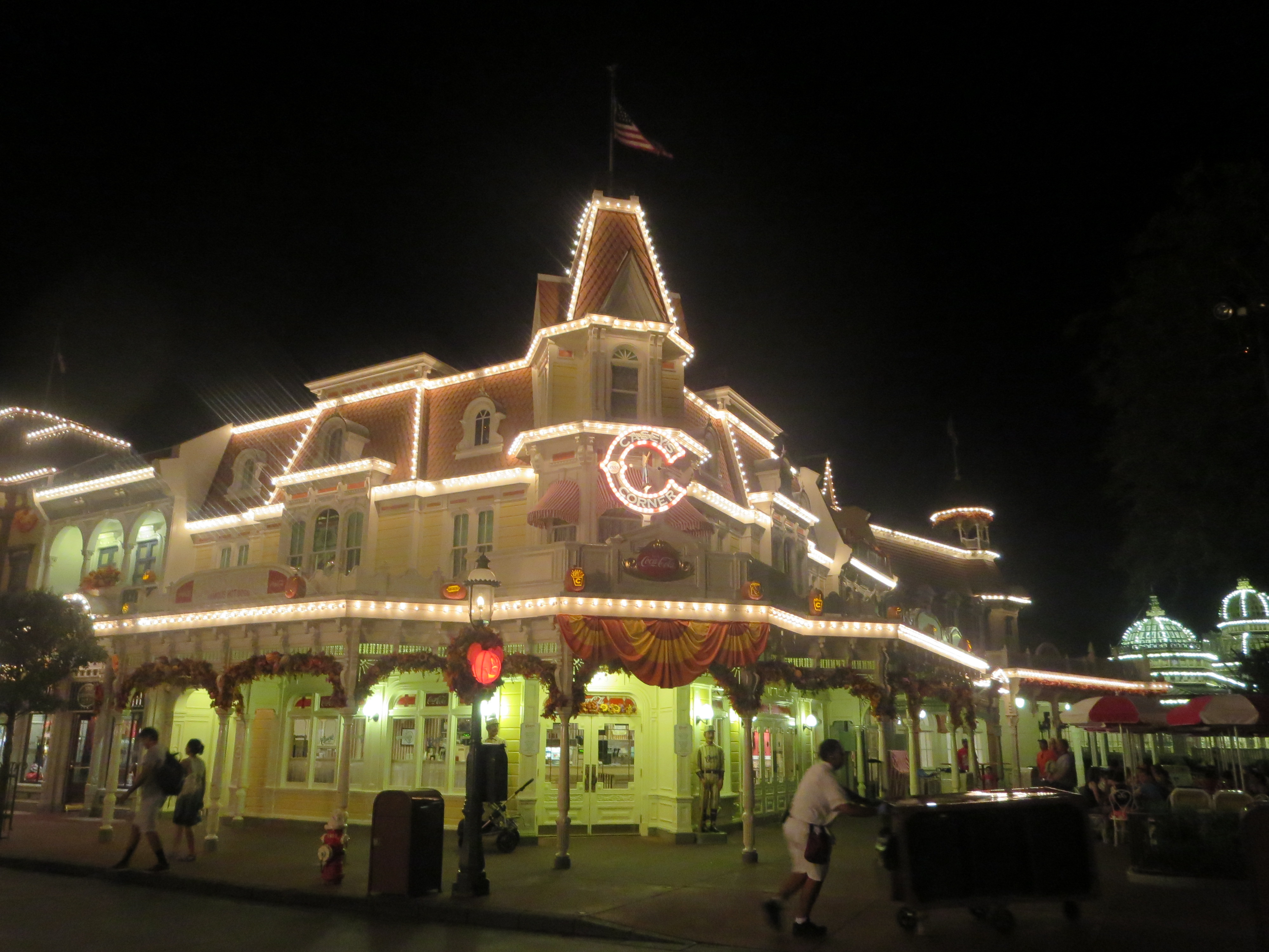 If you’ve been to Disney World in the fall, you’ve seen the many, many jack-o-lanterns that line the buildings along Main Street USA.  Each one is cleverly designed by Disney’s Art Director, David Hartmann and then carefully carved.  The pumpkins often match the theme of the building on which they stand.  You can find an ice cream sundae on top of The Plaza, a hot dog over Casey’s Corner, a film strip over The Cinema, and a dalmatian on the Fire Station.  You will also see more traditional jack-o-lantern faces.
