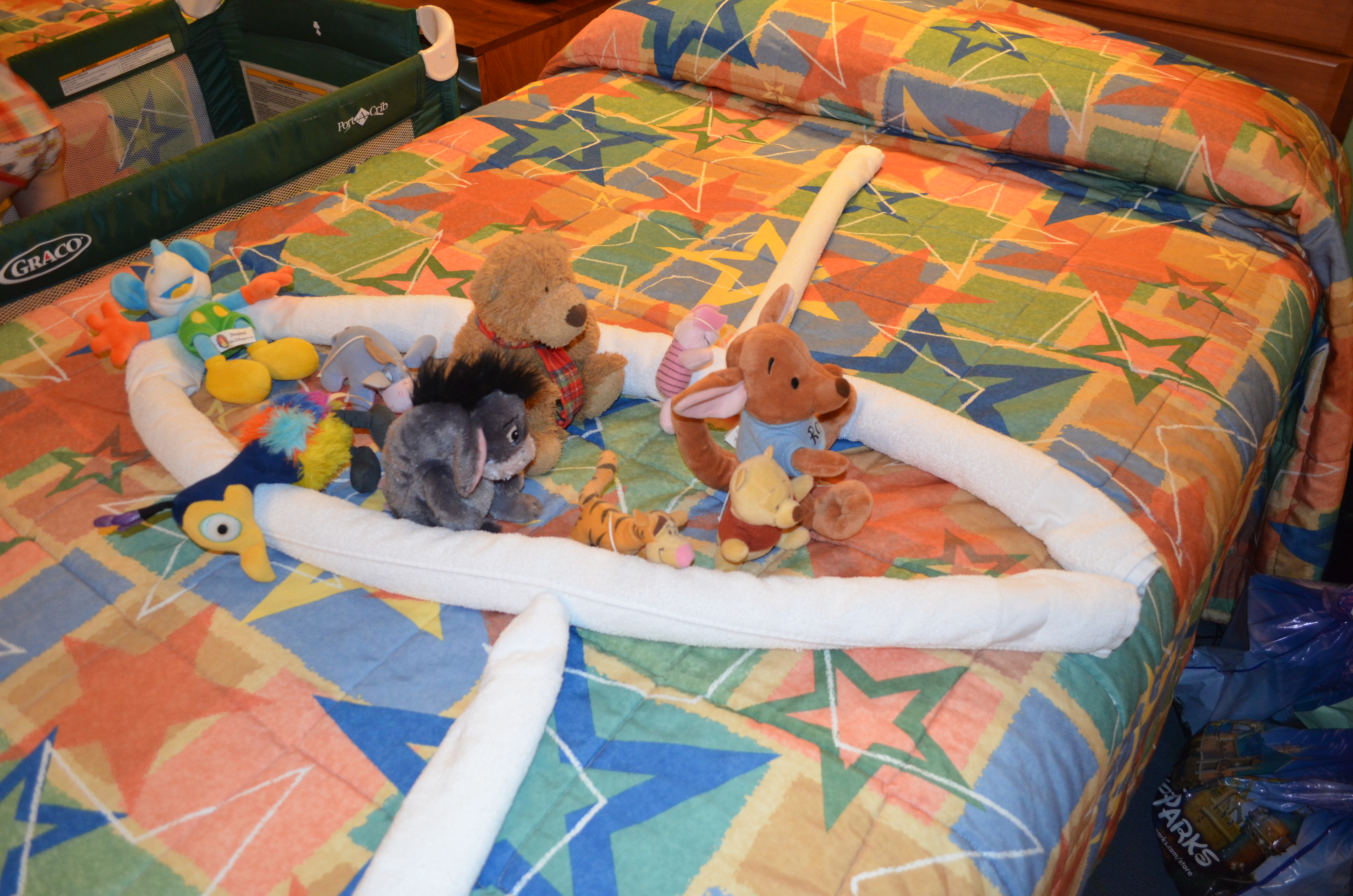 Not all Mouskeeping Cast Members are this creative, but, at the very least, your stuffed animals will be arranged each day. It’s still a fun change from the messy pile they’d started with!