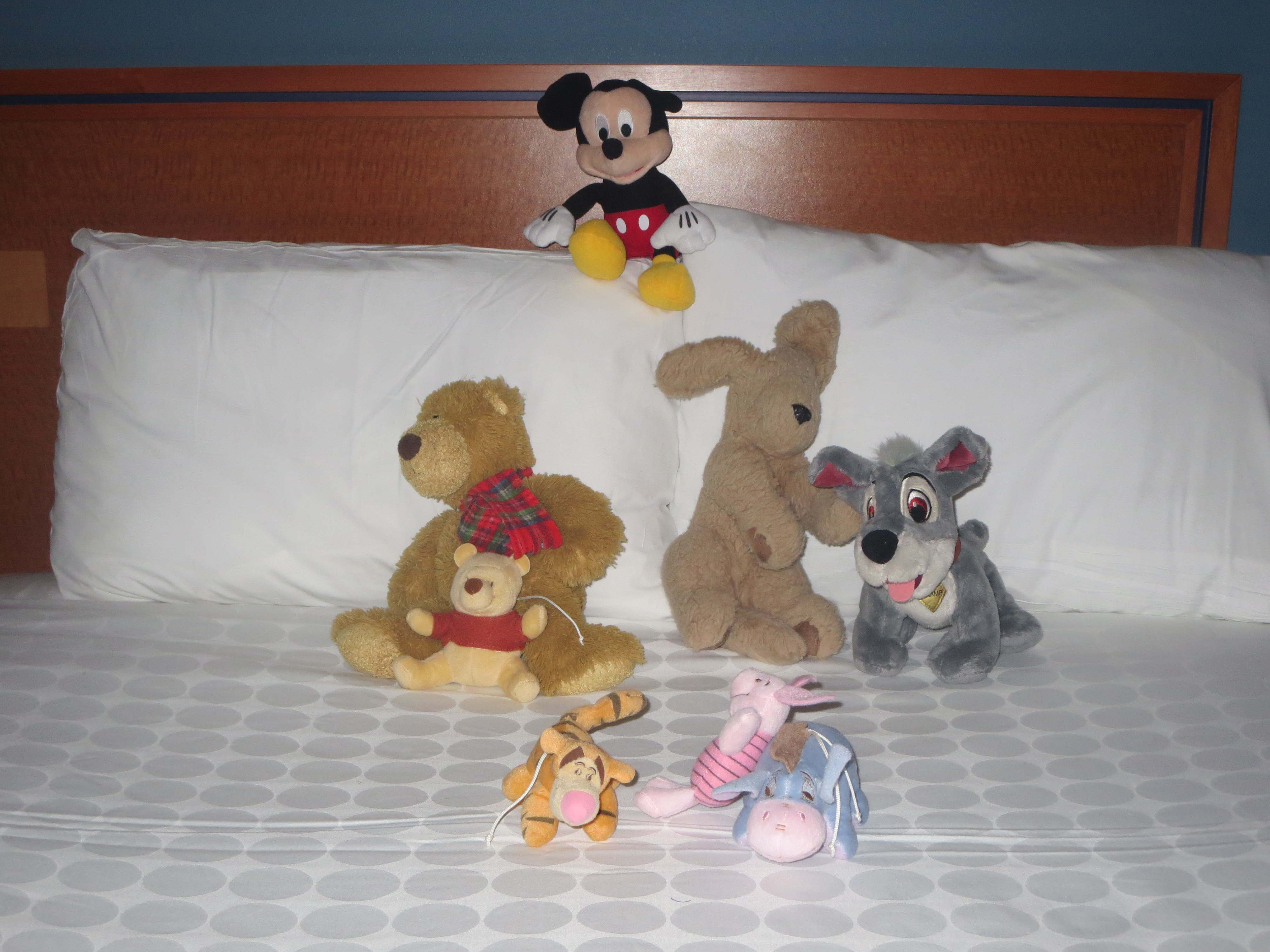 Each day, Mousekeeping (Disney’s version of Housekeeping) arranged our stuffed animals. Before we left in the mornings, we made sure that the kids noticed how we left the animals: in a pile on a bed.